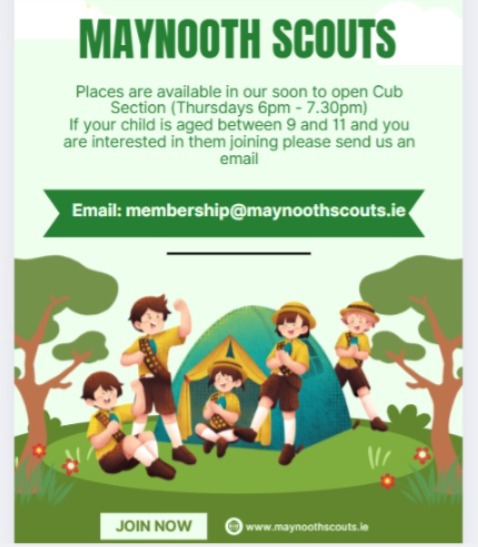 A small number of places are available for our new Cub Scout Section due to open next month. If you have a child aged between 9 and 11 and would like more information please email membership@maynoothscouts.ie or fill out our expression of interest form here.