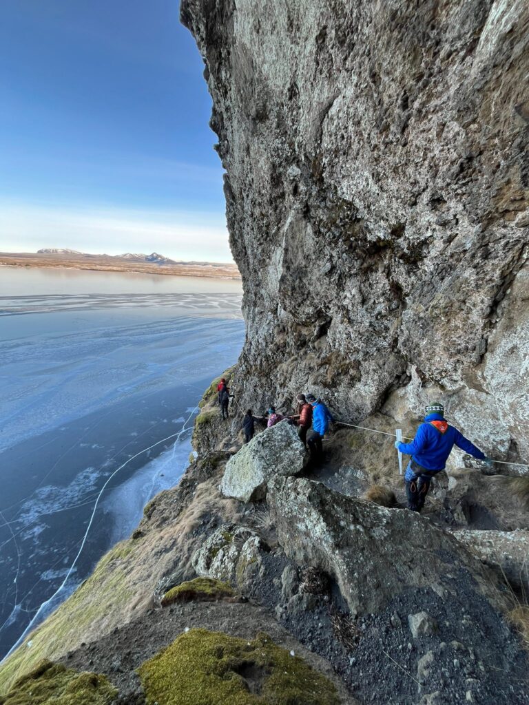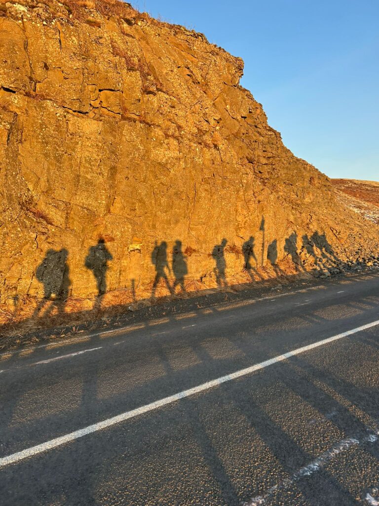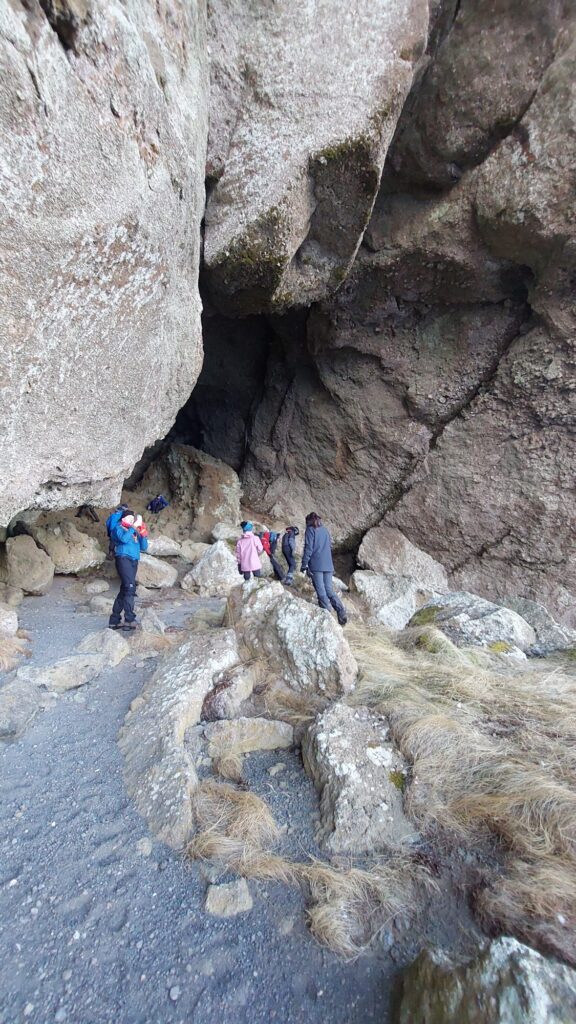 DAY 4.Training Hike day! It’s cold but dry, bright and sunny 🌞. We left USU after breakfast and followed the road past a lovely little church by the lake. We soon turned off the road and followed the edge of the lake until we got close to one of the many power stations. Climbing away from the lake we had some amazing views to the glaciers on Langökull. Depending down thr far side to yet another lake, Icelands coldest!. Following the coast the path narrowed to a ledge only a few inches across, with a drop straight down to the frozen lake. We came across a really cool cave. Then climbed up and crossed open wild land, we could see a farm in the distance and headed for that. More frozen lakes and ponds, which we bravely walked across (after the Icelandics told us it was safe). We soon found the main Rd back to USU.When we got back we found out in Iceland they have a thing called “Bun Day” where they eat cream buns 😋. It was time to take down the tents. We tried, but the pegs were frozen in the ground, one of the centre staff said he had a tool for it at home so we got away with leaving them up!Log book time, then into our uniforms for “culture night”. We tried different kinds of weird foods like fermented shark and sheep head 🤢.