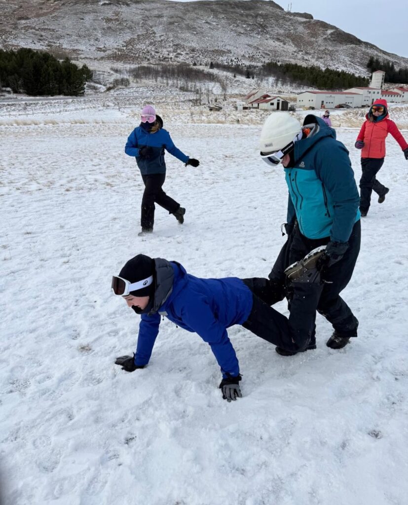 After a well-earned lie-in, we slowly rolled into the day, enjoying a relaxed morning before packing up our bags and getting ready for the next adventure. Once everyone was organised, we gathered for some games, and played some hurling in the snow. Before heading out, we had our hike briefing — maps out, routes discussed, safety covered, and excitement building. As usual, no day is complete without a bit of responsibility — finishing up by cleaning our hostel beds and leaving the space as we found it.